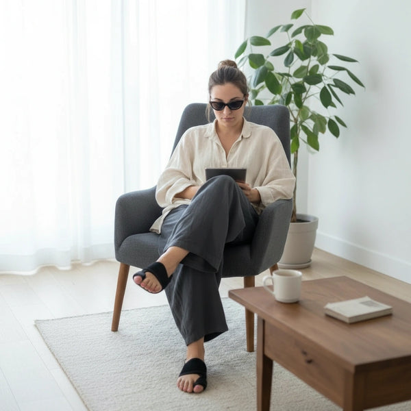 La férula es especialmente adecuada para actividades tranquilas como relajarte en el sofá, ver la televisión, leer o dormir. También puedes llevarla sin problemas mientras te mueves por casa.