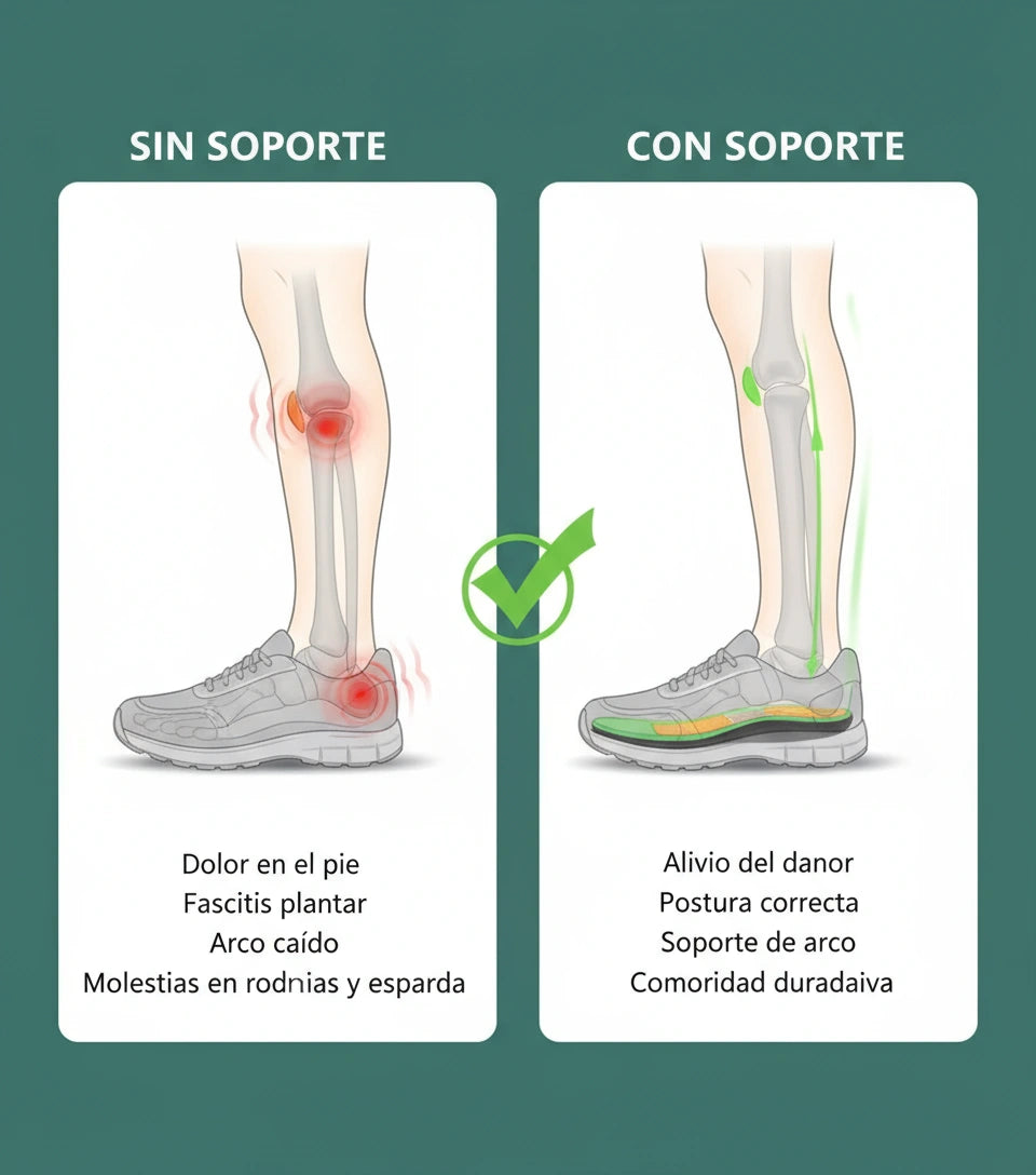 Las plantillas ortopédicas SoleVie™ de Relviae utilizan tecnología de redistribución de carga progresiva para realinear tu pisada, corregir la sobrecarga plantar, reducir el dolor y las molestias, y frenar de forma natural el avance de patologías como juanetes, fascitis plantar y metatarsalgia.